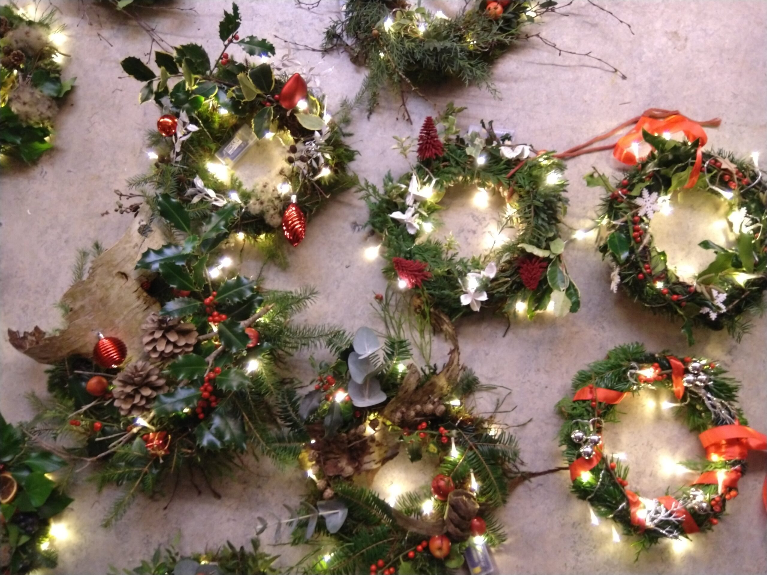 Er werd hard gewerkt in de Kibo o.l.v. Susan. Iedereen maakte een kerstkrans met zelf meegebrachte materialen uit de natuur.